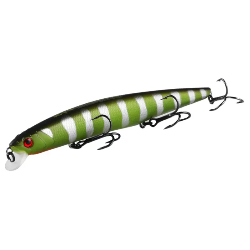 Bearking FishyCat JungleCat 140SP (копия Fishycat Junglecat 140SP) имеет длину 140 мм, вес 22 грамма, заглубление от 0.8 до 1,2 метра, плавучесть заявлена производителем как нейтральная (суспендер).Система дальнего заброса(смотрите на фото под описанием) реализована в виде трех крупных шаров, свободно перемещающихся в теле приманки. Так же есть еще стабилизирующий шар в передней части и два мелких шарика в шумовой камере. Беркинг Джангл Кэт является чисто твичинговым воблером для ловли щуки. Наиболее эффективен в конце лета, начале осени, когда вода уже остыла, но водоросли еще не опали.