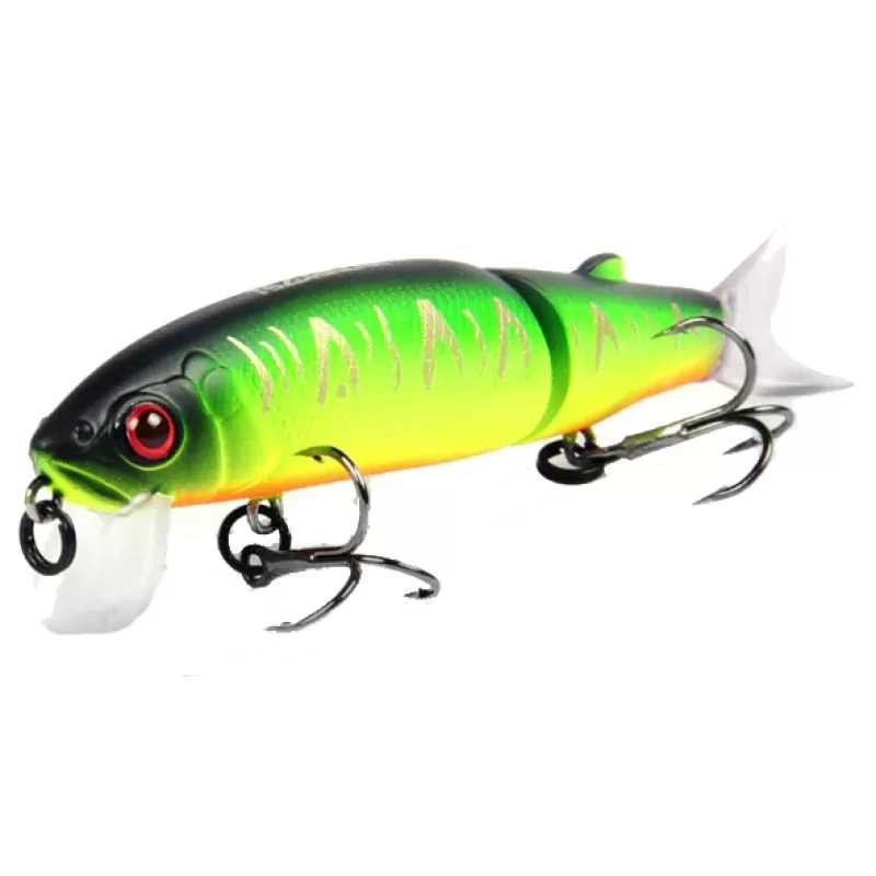 Приманка состоит из двух частей, каждая из которых подвижна. Так же в комплект входят два силиконовых хвостика. Тип копии – минноу. Длина приманки - 113 мм. Вес - 13 грамм. Заглубление 0,1-0,5 м. Размер приманки супер универсальный, отлично подойдет как для щуки, так и для другой хищной рыбы. Копия проста в использовании, не требовательна к строю спиннинга и навыкам рыболова. Идеально работает в окнах кувшинки и над травой на мелководье. Работает полный сезон открытой воды.