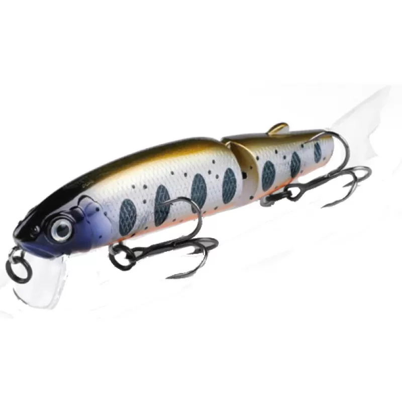 Приманка состоит из двух частей, каждая из которых подвижна. Так же в комплект входят два силиконовых хвостика. Тип копии – минноу. Длина приманки - 113 мм. Вес - 13 грамм. Заглубление 0,1-0,5 м. Размер приманки супер универсальный, отлично подойдет как для щуки, так и для другой хищной рыбы. Копия проста в использовании, не требовательна к строю спиннинга и навыкам рыболова. Идеально работает в окнах кувшинки и над травой на мелководье. Работает полный сезон открытой воды.