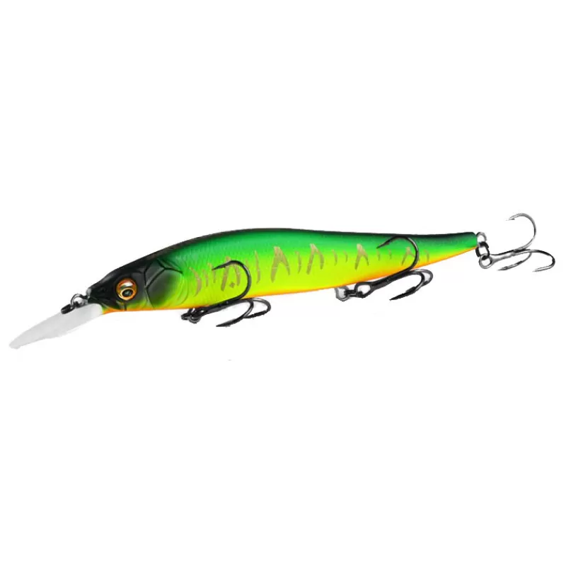Vision Oneten Plus 1 110 SP - это реплика на Megabass Vision Oneten Plus 1. Тип воблера — минноу, длина - 110 мм, вес - 14 грамм, заглубление 1,2 - 1.8 метра, тип плавучести — нейтральная(суспендер). Лучший способ анимации — твичинг. Воблер достаточно упорист за счет своей увеличенной лопатки, поэтому спиннинг лучше выбирать с некоторым запасом по верхнему тесту. Можно так же использовать эту приманку для троллинга по глубинам от двух до трех метров.