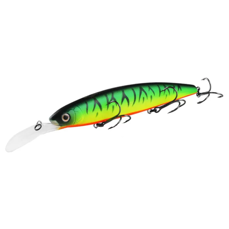 BearKing Balisong Minnow 130 SF Long Bill - это качественная реплика на Deps Balisong Minnow 130SF Longbill. Длина воблера - 130 мм, вес - 28,6 грамм. Заглубление - 2,5 - 3 метра. Тип приманки — минноу. Плавучесть - медленно всплывающий. При использовании более тяжелого металлического поводка, можно добиться нейтральной плавучести. Полетные характеристики у Лонг Билла за счет системы дальнего заброса и немаленького веса отличные. Летит за горизонт, даже против ветра. Способ анимации, конечно же твичинг. Мощные рывки лучше чередовать с небольшими потяжками и паузами. Продолжительность пауз в зависимости от температуры воды. Чем холоднее, тем дольше должна быть пауза. Так же можно использовать приманку и при ловле троллингом. Воблер очень шумный, поэтому способен привлекать внимание хищника с больших глубин. Для правильной анимации потребуется мощный спиннинг с быстрым строем.