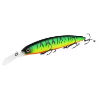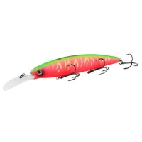 BearKing Balisong Minnow 130 SF Long Bill - это качественная реплика на Deps Balisong Minnow 130SF Longbill. Длина воблера - 130 мм, вес - 28,6 грамм. Заглубление - 2,5 - 3 метра. Тип приманки — минноу. Плавучесть - медленно всплывающий. При использовании более тяжелого металлического поводка, можно добиться нейтральной плавучести. Полетные характеристики у Лонг Билла за счет системы дальнего заброса и немаленького веса отличные. Летит за горизонт, даже против ветра. Способ анимации, конечно же твичинг. Мощные рывки лучше чередовать с небольшими потяжками и паузами. Продолжительность пауз в зависимости от температуры воды. Чем холоднее, тем дольше должна быть пауза. Так же можно использовать приманку и при ловле троллингом. Воблер очень шумный, поэтому способен привлекать внимание хищника с больших глубин. Для правильной анимации потребуется мощный спиннинг с быстрым строем.