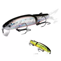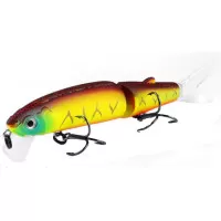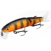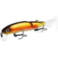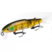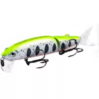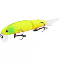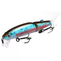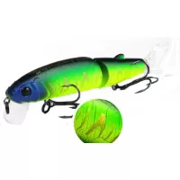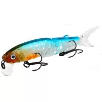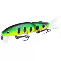 Приманка состоит из двух частей, каждая из которых подвижна. Так же в комплект входят два силиконовых хвостика. Тип копии – минноу. Длина приманки - 113 мм. Вес - 13 грамм. Заглубление 0,1-0,5 м. Размер приманки супер универсальный, отлично подойдет как для щуки, так и для другой хищной рыбы. Копия проста в использовании, не требовательна к строю спиннинга и навыкам рыболова. Идеально работает в окнах кувшинки и над травой на мелководье. Работает полный сезон открытой воды.