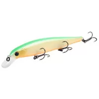 Воблер Bearking Riprizer 112F(копия Imakatsu Riprizer 112f) имеет длину 112 мм, вес 15 грамм, заглубление от 0,8 до 1,5 метров. Плавучесть — плавающий.Приманка своим поведением в воде создает имитацию кормящейся рыбки. На рывке Рипрайзер погружается вглубь, на паузе всплывает вверх под углом 45 градусов. Всплывает воблер достаточно быстро, поэтому паузу между рывками не рекомендуется делать дольше 1 секунды. Отлично работает летом и ранней осенью на мелководных участках по щуке и крупному окуню.